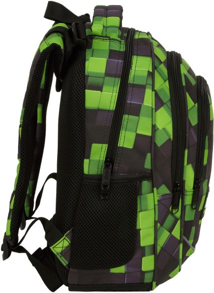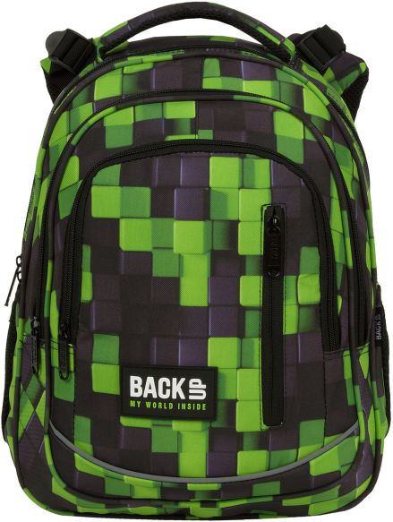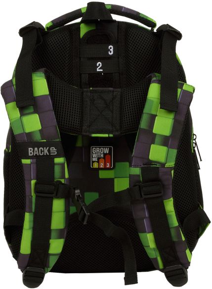 Nr: AX474DF Kod kreskowy: 5901130101184 Nr kat. PLB6R52 Piksele, a może drobne cząsteczki? Intensywnie zielone oraz grafitowe sześciany łączą się w konfigurację, tworząc trójwymiarową przestrzeń. Głębi dodają im padające na nie cienie. Układankę z figur dopełniają czarne suwaki i zamki. Ten plecak dla chłopca z pewnością wyróżni się na szkolnym korytarzu. Dzięki rozmiarom dopasowanym do drobnej postury dziecka, to idealny plecak dla pierwszoklasisty. Plecak BackUP posiada: - system „grow with me” z regulacją wysokości położenia szelek