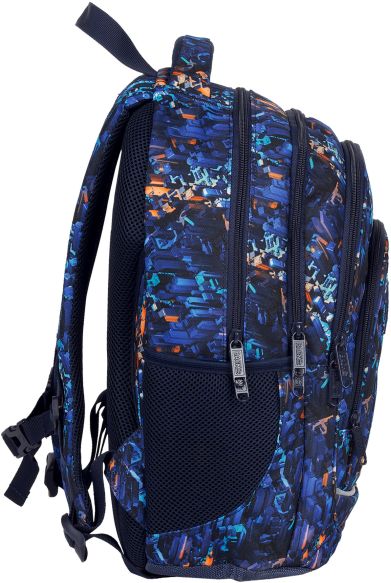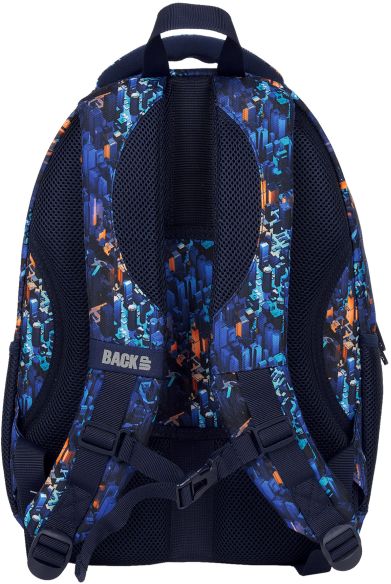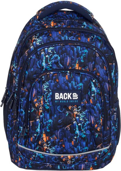 Nr: AX442DF Kod kreskowy: 5901130100743 Nr kat. PLB6A53 Nocne miasto tętniące życiem. Strzeliste kontury drapaczy chmur w najróżniejszych odcieniach niebieskiego rozciągają się na materiale tego młodzieżowego plecaka. Odcienie pomarańczu przywodzą na myśl promienie zachodzącego słońca padającego na szklane wieżowce. Wielkomiejski plecak dopełniają granatowe suwaki i zamki. Plecak BackUP posiada: - 4 komory