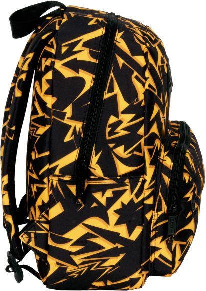 Gotowi na sporą dawkę emocji? Odlotowe kształty o ostrych krawędziach i intensywnej czarnej barwie przywodzą na myśl dynamiczne zwroty akcji. Głębokie, żółte tło materiału dodaje im jeszcze więcej ekspresji a czarne suwaki i zamki dopełniają całość. Dzięki rozmiarom dopasowanym do drobnej postury dziecka, to idealny pierwszy plecak do przedszkola i zerówki. Sprawdzi się świetnie jako plecak turystyczny. Plecak BackUP posiada: - 2 dużą i bardzo pojemną komorę - 2 mniejsze kieszenie na drobiazgi - ergonomiczne szelkiz regulacją długości - plecy usztywniane pianką - wygodny uchwyt do przenoszenia i powieszania plecaka - rozmiar idealny na wycieczkę oraz dla klas 0 i 1 - rozmiar: 36x27x16 cm - waga: 240 g Nazwa kolekcji: Action