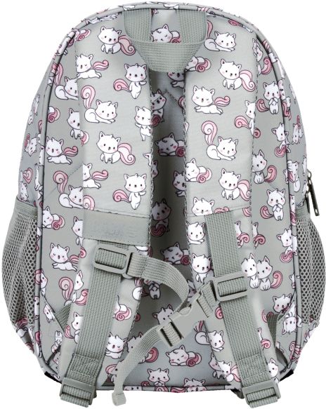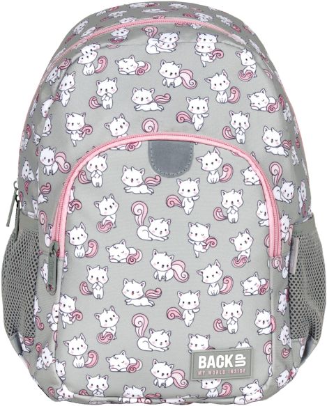 Nr: AX475DF Kod kreskowy: 5901130101214 Nr kat. PLB6T26 Białe kotki rozpoczęły swoje psoty, majestetycznie poruszając puszystymi, różowymi ogonkami. Skaczące, tańczące i śpiące zwierzaki dodają szaremu materiałowi plecaka dziewczęcego uroku. Różowe zamki dopełniają całości. Z tymi milusińskimi futrzakami każdy dzień w szkole staje się piękniejszy. Dzięki rozmiarom dopasowanym do drobnej postury dziecka, to idealny pierwszy plecak do przedszkola i zerówki. Sprawdzi się świetnie jako plecak turystyczny. Plecak BackUP posiada: - 2 komory