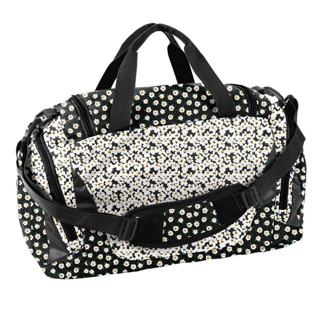 Torba sportowa. Pojemna komora główna, mała kieszeń na froncie, 2 kieszenie boczne (w tym jedna na obuwie). Dwa uchwyty do przenoszenia, pasek na ramię z osłonką. Wymiary: 44x23x22
