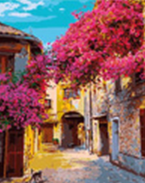 Titanum » Zestawy kreatywne DIY » Malowanie po numerach » Malowanie po numerach 40x50cm ULICZKA Z KWITNĄCYMI DRZEWAMI pionowy