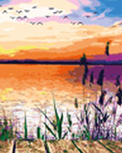 Titanum » Zestawy kreatywne DIY » Malowanie po numerach » Malowanie po numerach 40x50cm ZACHÓD SŁOŃCA NAD JEZIOREM pionowy