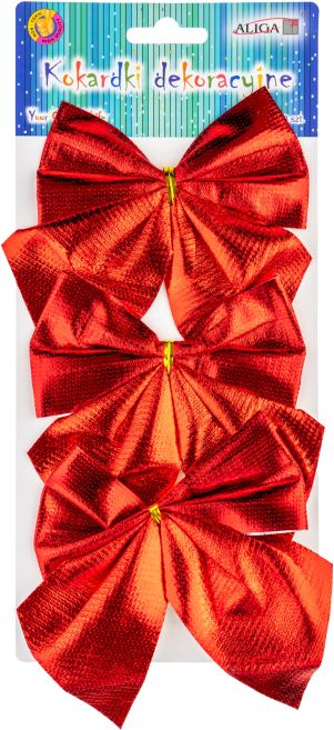 Aliga » Pozostałe ciekawe artykuły » Kokardki KOK-5272 metalizowane czerwone, rozm. 14x12cm, blist. 3szt.