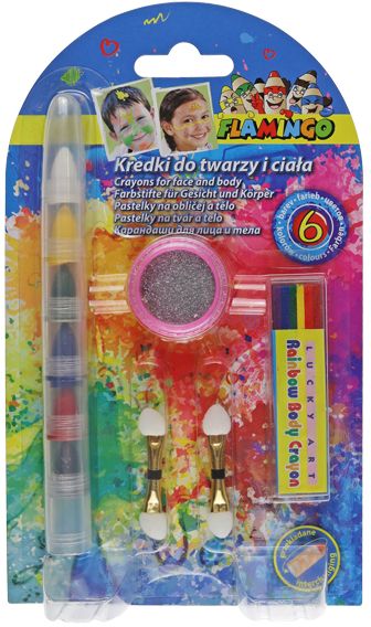Kredki do twarzy i ciała przekładane 6 kolorów + tęczowa