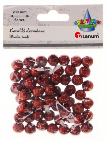 Titanum » Artykuły dekoracyjne całoroczne » Koraliki, Guziki » Koraliki drewniane okrągłe O12mm otwór O3mm lakierowane brązowe drewno 60szt.