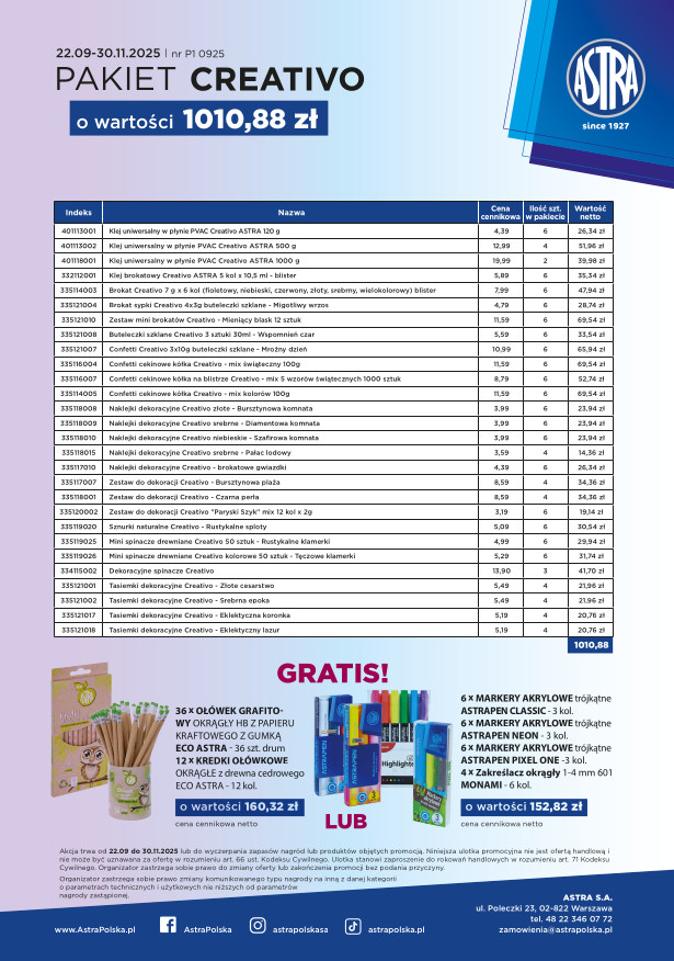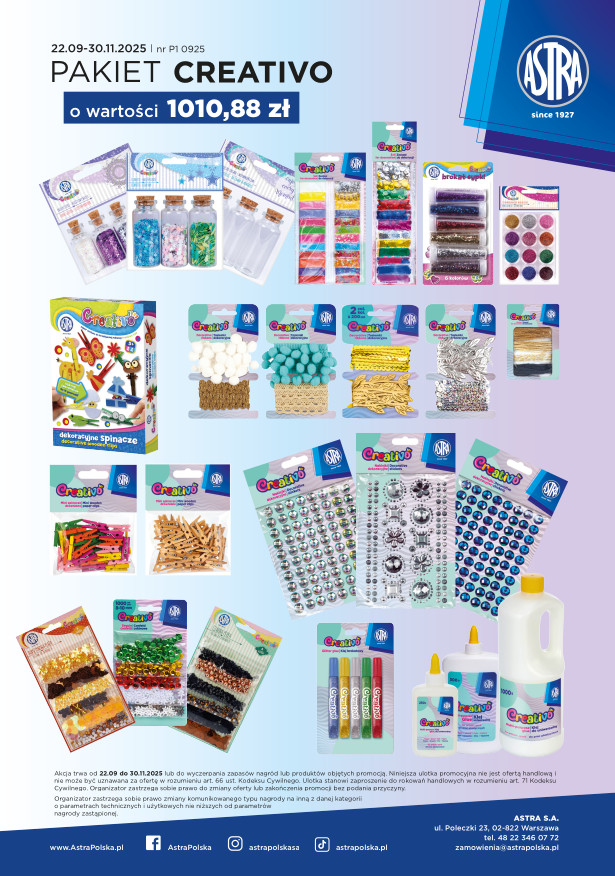 Pakiet P1 0925 ASTRA Creativo o wartości 1010, 88 + GRATIS: towar