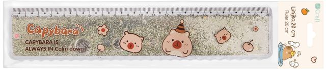 Stylowa i efektowna linijka o długości 20 cm, wypełniona wodą i błyszczącym brokatem, który porusza się podczas używania. Ozdobiona uroczym motywem kapibary, przyciąga wzrok i dodaje wyjątkowego charakteru szkolnym oraz biurowym akcesoriom. Srebrny kolor nadaje jej elegancji i nowoczesnego wyglądu. Idealna dla fanów kapibar oraz oryginalnych gadżetów.