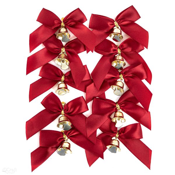 Kokardki z dzwoneczkami – 10 szt., czerwone