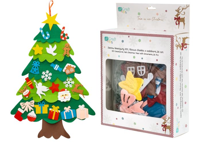 ZESTAW KREATYWNY DIY FILCOWA CHOINKA Z OZDOBAMI 71 X 90 CM, 25 SZT. [opakowanie=6szt]