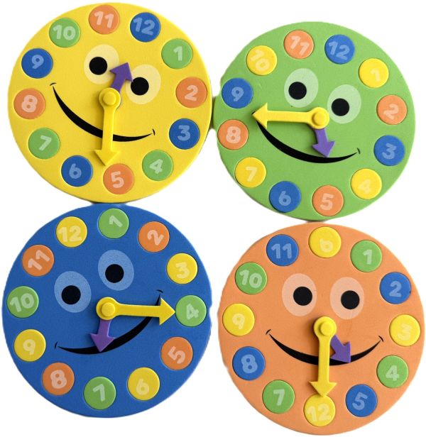 Zegar z pianki ilość : 1 szt kolor: niebieski, zielony, żółty, pomarańczowy