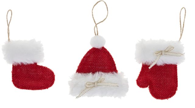 Zawieszki - bucik, czapka, rękawiczka rozmiar: 9 x 3 x 9 cm kolor: czerwony