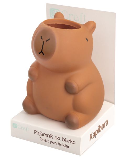 Przybornik na biurko w kształcie kapibary na długopisy, ołówki, pisaki i inne drobne przybory szkolno-biurowe. Pomoże w utrzymaniu porządku przy stanowisku pracy czy nauki. Wykonany z wysokiej jakości tworzywa sztucznego, łatwy w utrzymaniu. Stylowy i praktyczny gadżet, idealny do pokoju dziecięcego. rozmiar: 10 x 7 x 7 cm
