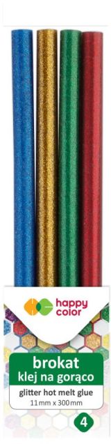 Gdd » Nowości » Klej do pistoletu na gorąco, brokatowy, 11mm x 200mm, 4szt, blister, Happy Color