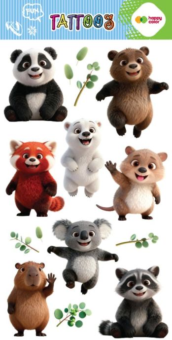 Tatuaże zmywalne LOVELY BEARS, rozm. 100x200 mm, Happy Color [opakowanie=5szt]