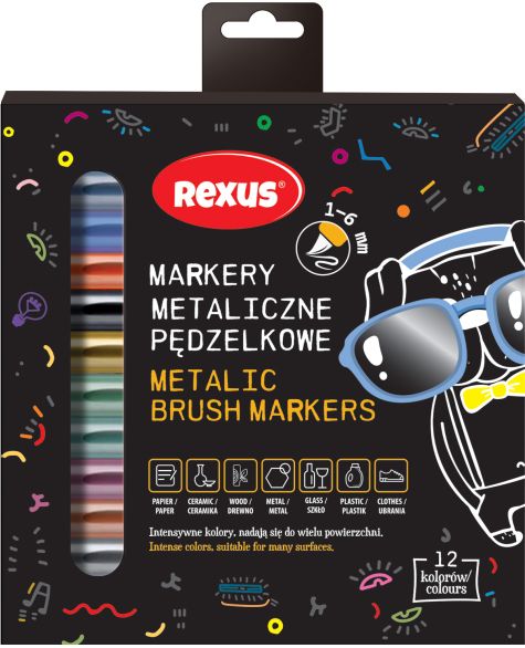 MARKERY PĘDZELKOWE METALICZNE 12kol. / REXUS TEENS