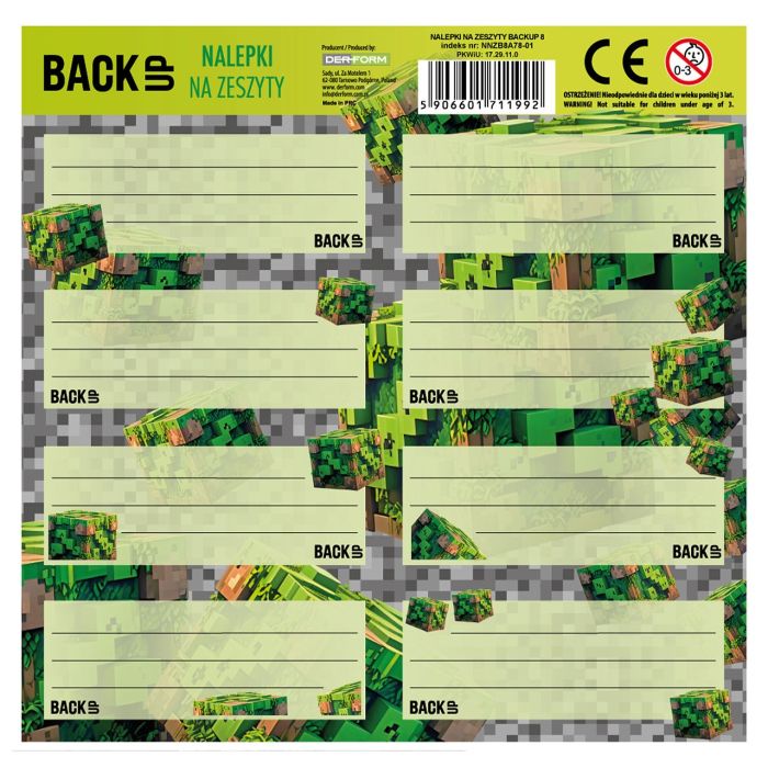 Derform » Backup » Artykuły papiernicze i piśmiennicze » NALEPKI NA ZESZYTY BACKUP 8 A 78 [opakowanie=25szt]