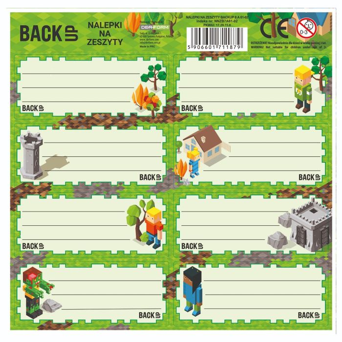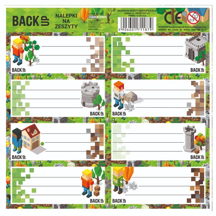 Derform » Backup » Artykuły papiernicze i piśmiennicze » NALEPKI NA ZESZYTY BACKUP 8 A 61 [opakowanie=25szt]
