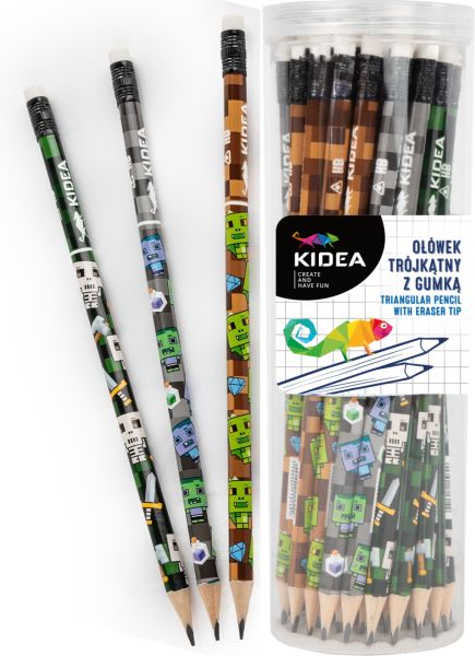 OŁÓWEK TRÓJKĄTNY Z GUMKĄ Z NADRUKIEM C KIDEA [opakowanie=48szt]