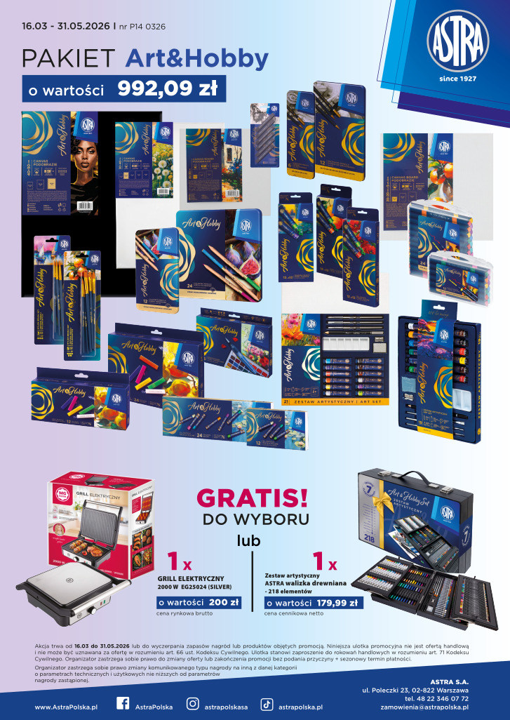 Pakiet P14 0326 ASTRA ArtxHobby o wartości 992, 09zł + GRATIS: towar lub grill