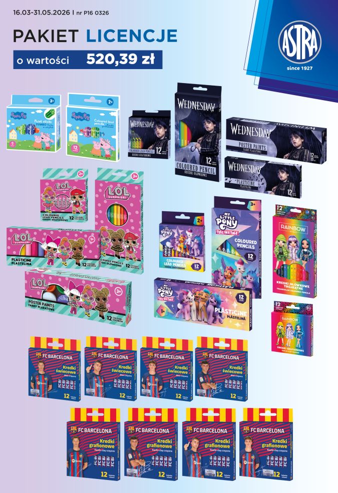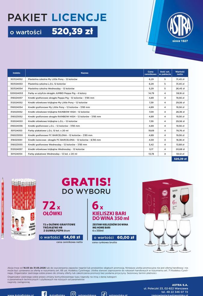 Pakiet P16 0326 ASTRA licencje o wartości 520, 39zł + GRATIS: towar lub kieliszki
