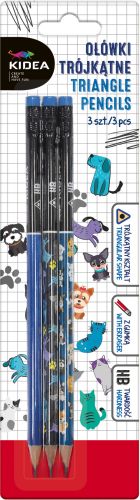 OŁÓWKI TRÓJKĄTNE Z NADRUKIEM 3 SZT. KIDEAZestaw 3 trójkątnych ołówków z zabawnym nadrukiem. Ołówki idealne dla miłośników kotków i psów. Ergonomiczny i trójkątny kształt ułatwi prawidłowy chwyt i wygodne użytkowanie. Drewniane ołówki z rysikiem HB zakończone gumką, sprawdzą się doskonale... |