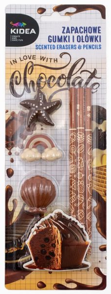 ZAPACHOWE GUMKI I OŁÓWKI A CZEKOLADA KIDEAZapachowy niezbędnik Kidea o słodkim, czekoladowym aromacie, który zawiera 3 ołówki o twardości rysika HB oraz trzy gumki w kształcie muszelki, rozgwiazdy i tęczy. Średniej twardości rysik i trójkątny kształt sprawiają, że ołówki są poręczne i wygodne... |