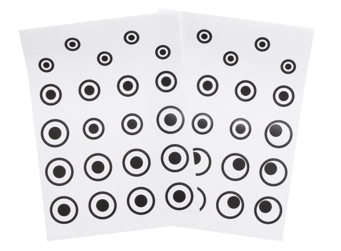 Naklejki na folii wzór: oczy rozmiar: 10 x 20, 5 cm ilość : 42 szt, 2 arkusze |