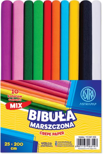 Bibuła marszczona ASTRAPAP 25*200 cm, MIX 10 kol., zestaw• wysokiej jakości elastyczna bibuła marszczona • idealna do prac kreatywnych i plastycznych |