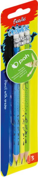 Ołówek z gumką Fiorello EXTRA blister 3 szt. (sz)(p)– nowa seria – lakierowany – z gumką – twardość grafitu: HB – przekrój trójkątny – opakowanie: 3 szt. |