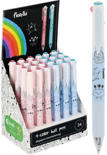 Długopis FIORELLO GR-F5518 wielokolorowy (sz)– automatyczny – 4 wkłady – ergonomiczna obudowa z uchwytem antypoślizgowym – długość pisania: 1030 x 4 m – grubość linii 0,5 mm – opakowanie: 24 szt. |