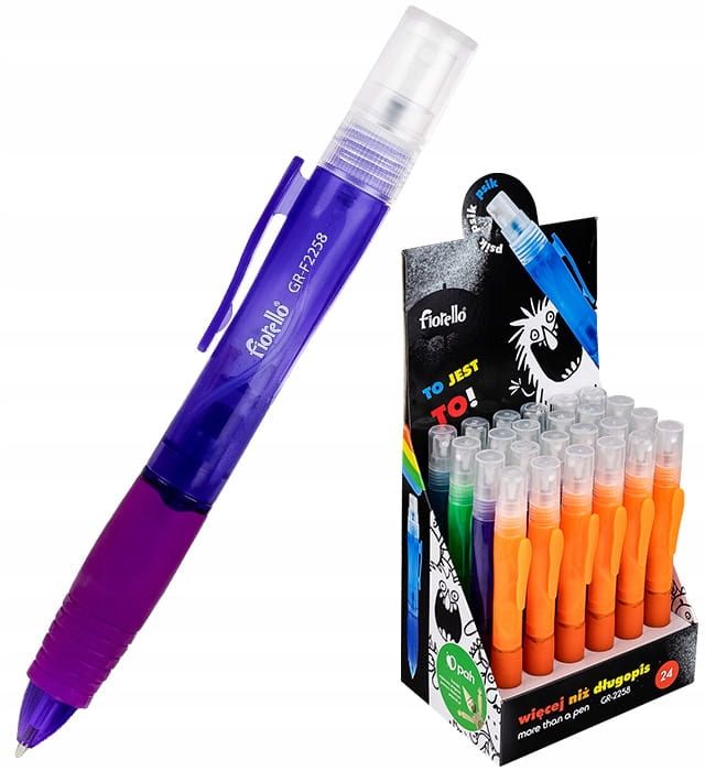 Długopis ze spryskiwaczem FIORELLO GR-F2258Długopis i spryskiwacz w jednym - wielofunkcyjny gadżetŁączy on funkcję długopisu i spryskiwacza, co zwiększa jego użyteczność. Zbiorniczek można wypełnić dowolną cieczą np. perfumami lub płynem dezynfekującym, co umożliwia dezynfekcję rąk w dowolnym... |