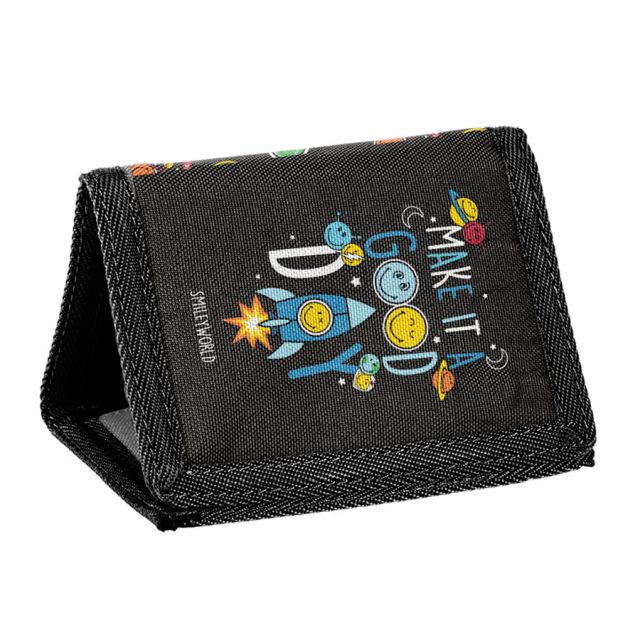 Portfel PASO SMILEY SM24LP-002 26x12 (12x8, 5) Portfel ze sznurkiem do zawieszania. Jedna przegródka na zamek na monety, jedna przeźroczysta kieszonka np. na zdjęcie, dwie dodatkowe kieszonki, jedna kieszeń przez całą długość rozłożonego na płasko portfela. |