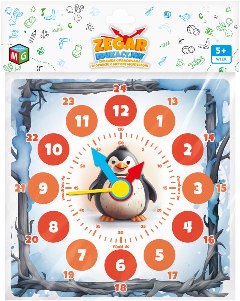 ZEGAR EDUKACYJNY PINGWINEK„Zegar edukacyjny – Pingwin” to wyjątkowa pomoc do nauki godzin, zgodnie z podstawą programową dla klas nauczania początkowego. Tarcza zegara umieszczona jest na solidnej tekturze o rozmiarze 23 x 23 cm. Ruchome wskazówki z... |