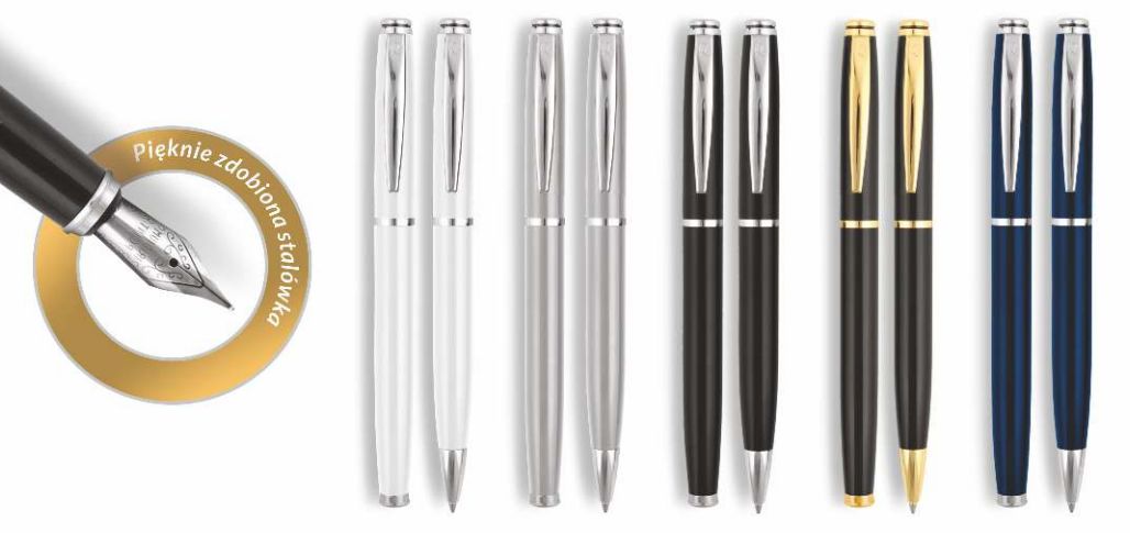 Popularny komplet składający się z długopisu i ołówka automatycznego w estetycznym etui.