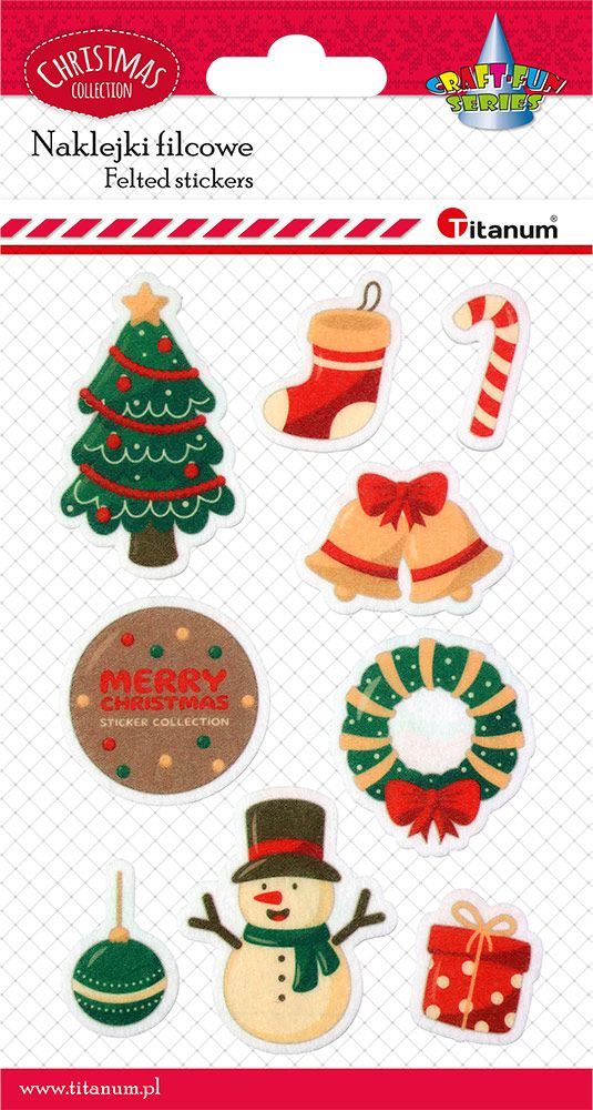 Naklejki filcowe choinka, wianek, bałwanek, prezent, bombki mix 9szt.🎁 Naklejki filcowe Titanum Craft-Fun Series – Świąteczny mix 9szt.