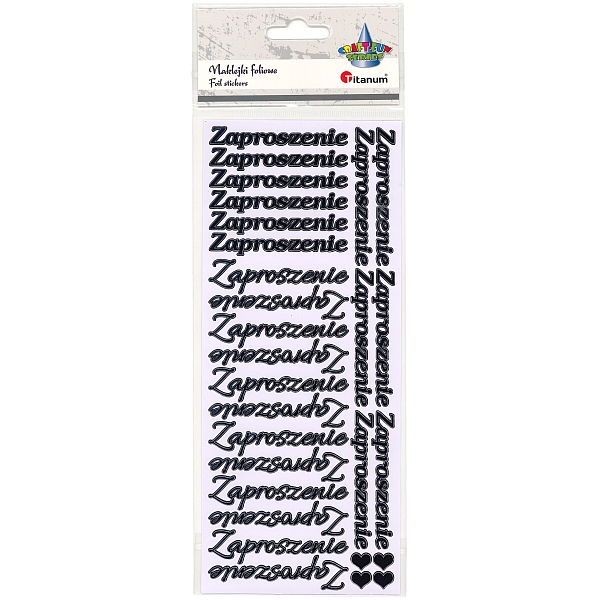 Naklejki foliowe ?Zaproszenie? 3 wzory czcionki, 4 serduszka czarne 28szt. |