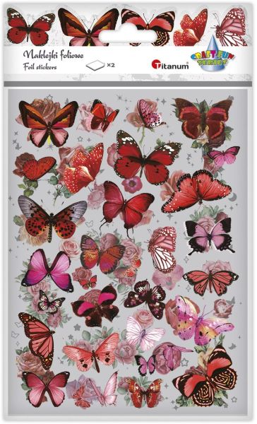 Naklejki foliowe 6 plansz motyle czerwone, różowe, błękitne |