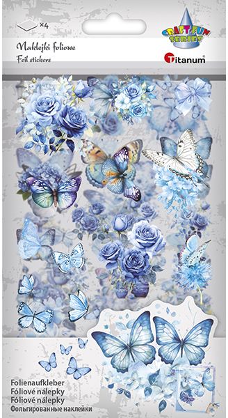 Naklejki foliowe 4 plansze motyle, kwiaty tonacja niebieska |