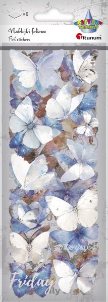 Naklejki foliowe 6 plansz motyle białe, niebieskie, fioletowe, brązowe, czerwone, czarne |