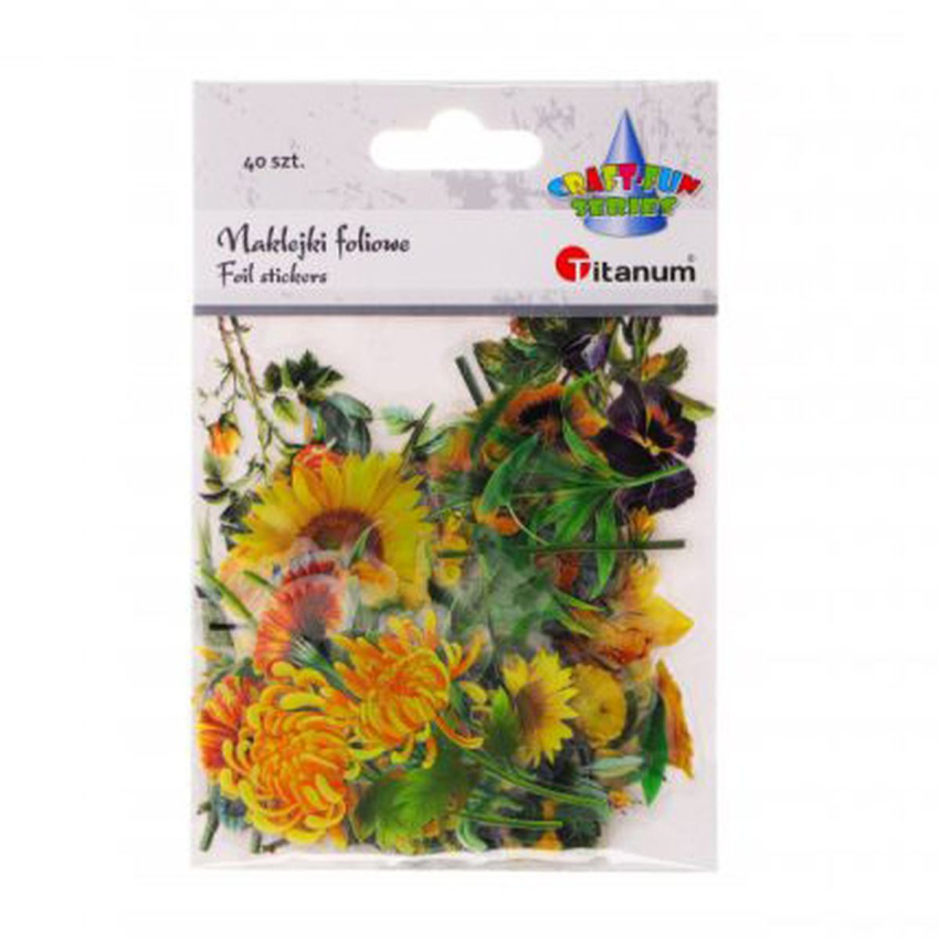Naklejki foliowe kwiaty tonacja żółta mix wzorów i rozmiarów 40szt. |