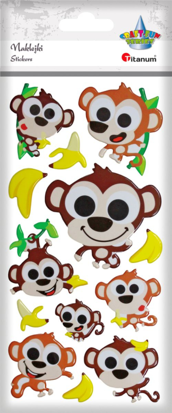 Naklejki wypukłe miękkie małpki, banany 13szt. |