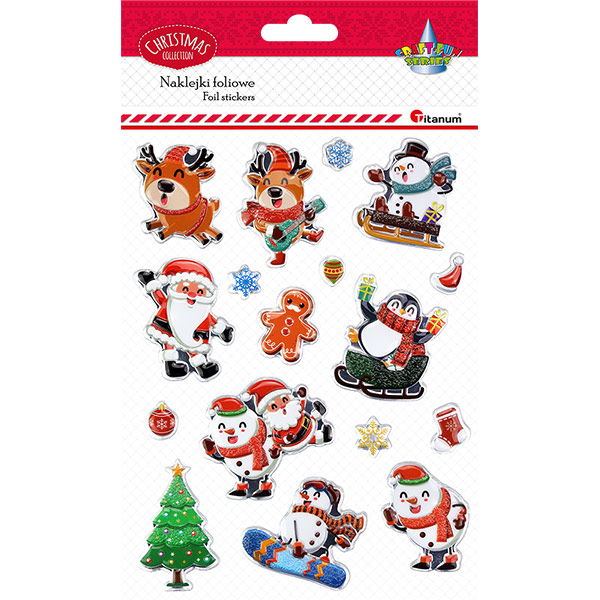 Naklejki wypukłe Mikołaj, bałwanki, Ciastek, pingwin, choinka, renifery 17szt. |