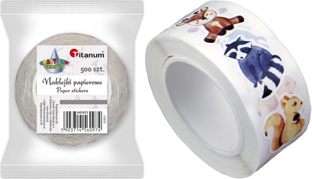 Naklejki papierowe na taśmie 8 wzorów mix rozmiarów zwierzęta leśne 500szt. szerokość taśmy 27mm |