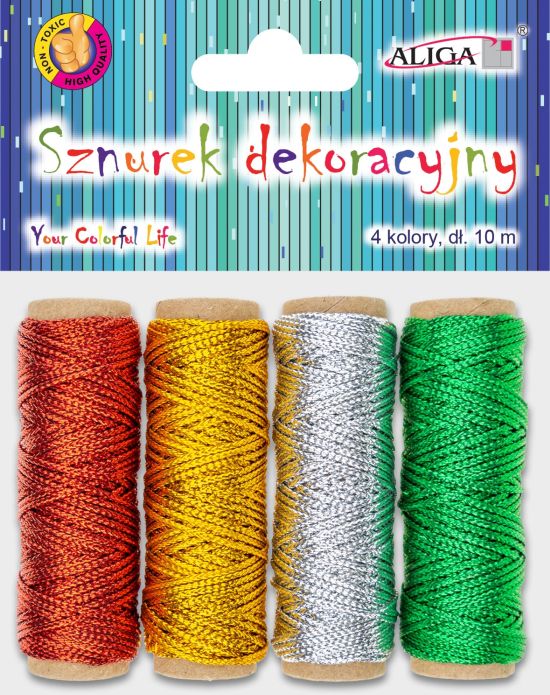 Sznurek dekoracyjny SZ-2929 metalizowany, rozm. 1, 5mm x 10m, op. zaw. 4 kolory |