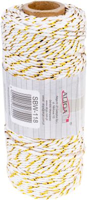 Sznurek bawełniany SBW-118 biały ze złotą nitką, 3mm 100m (splot 21 nitek) |