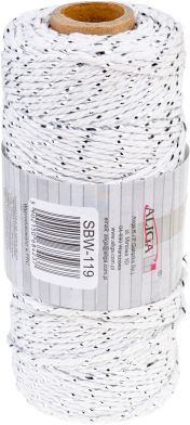 Sznurek bawełniany SBW-119 biały ze srebrną nitką, 3mm 100m (splot 21 nitek) |