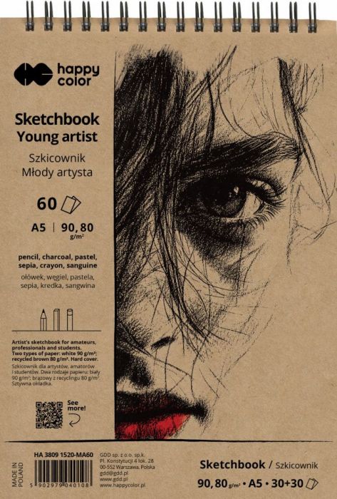 Szkicownik na spirali Młody Artysta, A4, 60 ark, 80/90g, Happy Color [opakowanie=5szt] |