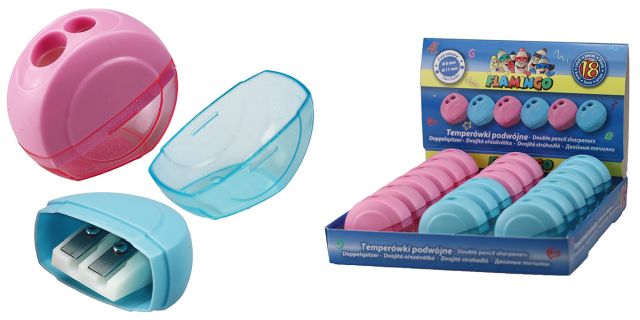 Temperówka podwójna z pojemnikiem display 18 sztuk ZWIERZAKI UCZNIAKI |