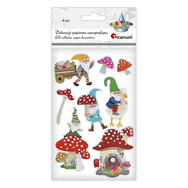 Dekoracje samoprzylepne papierowe 3D krasnale, muchomorki mix rozmiarów 8szt. |